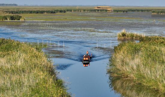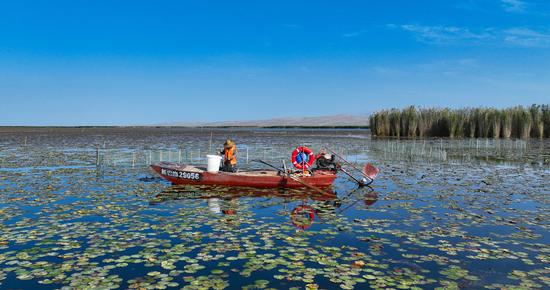 中新网新疆新闻9月22日电(年磊)金秋时节,位于新疆维吾尔自治区巴音郭楞蒙古自治州博湖县境内的博斯腾湖的螃蟹迎来丰收季,波光粼粼的湖面上,穿梭的渔船与芦苇、睡莲、沙漠构成一幅生动的秋日画卷。