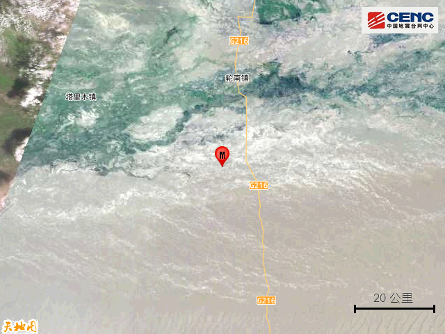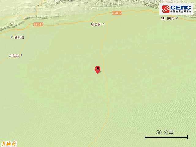 速报参数:据中国地震台网正式测定,9月26日6时41分在新疆巴音郭楞州尉犁县发生3.6级地震,震源深度18公里,震中位于北纬40.89度,东经84.15度。