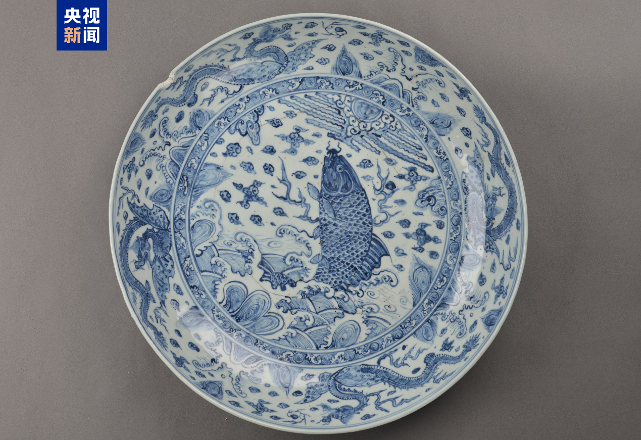 △上图为:明青花鱼跃龙门应龙纹大盘