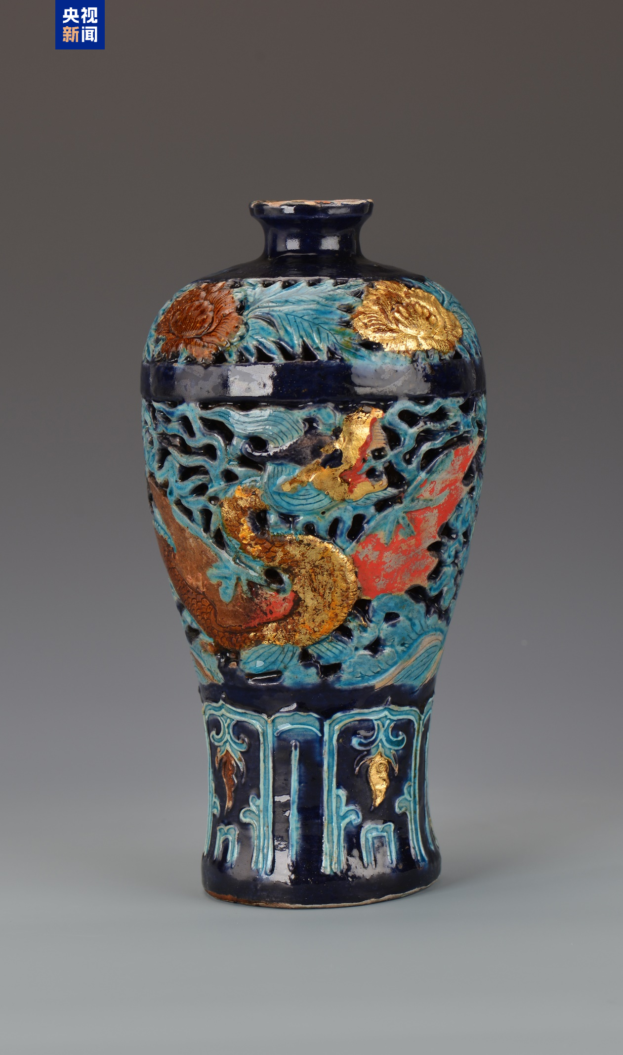 △上图为:明珐华彩贴金镂空应龙纹梅瓶
