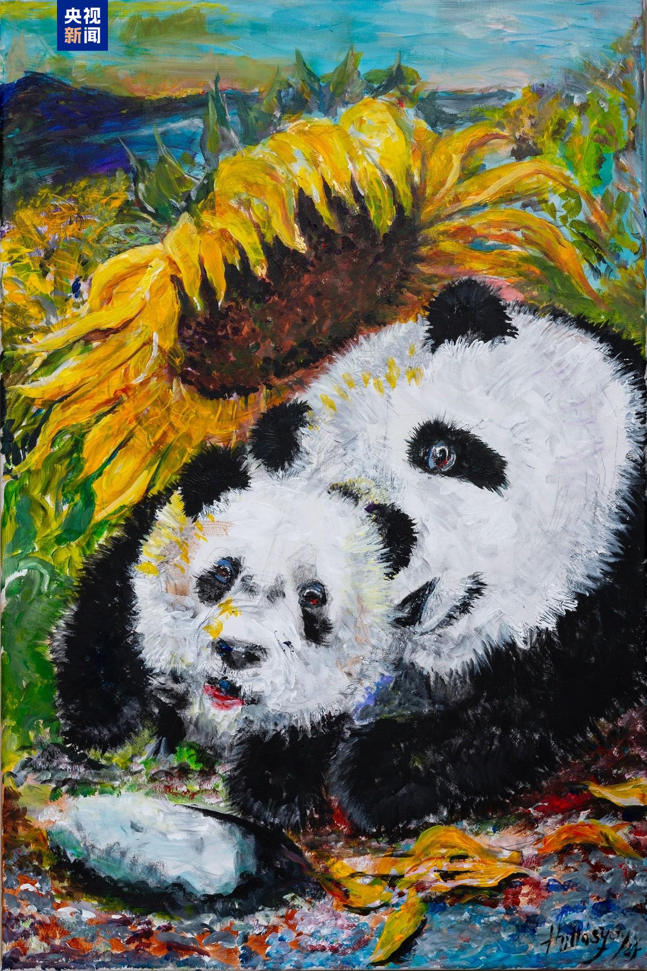 受到旅美大熊猫“云川”和“鑫宝”的启发,美国著名雕塑家、画家尤里·霍洛西为“云中锦书”创作《沐浴阳光的和谐瞬间》。
