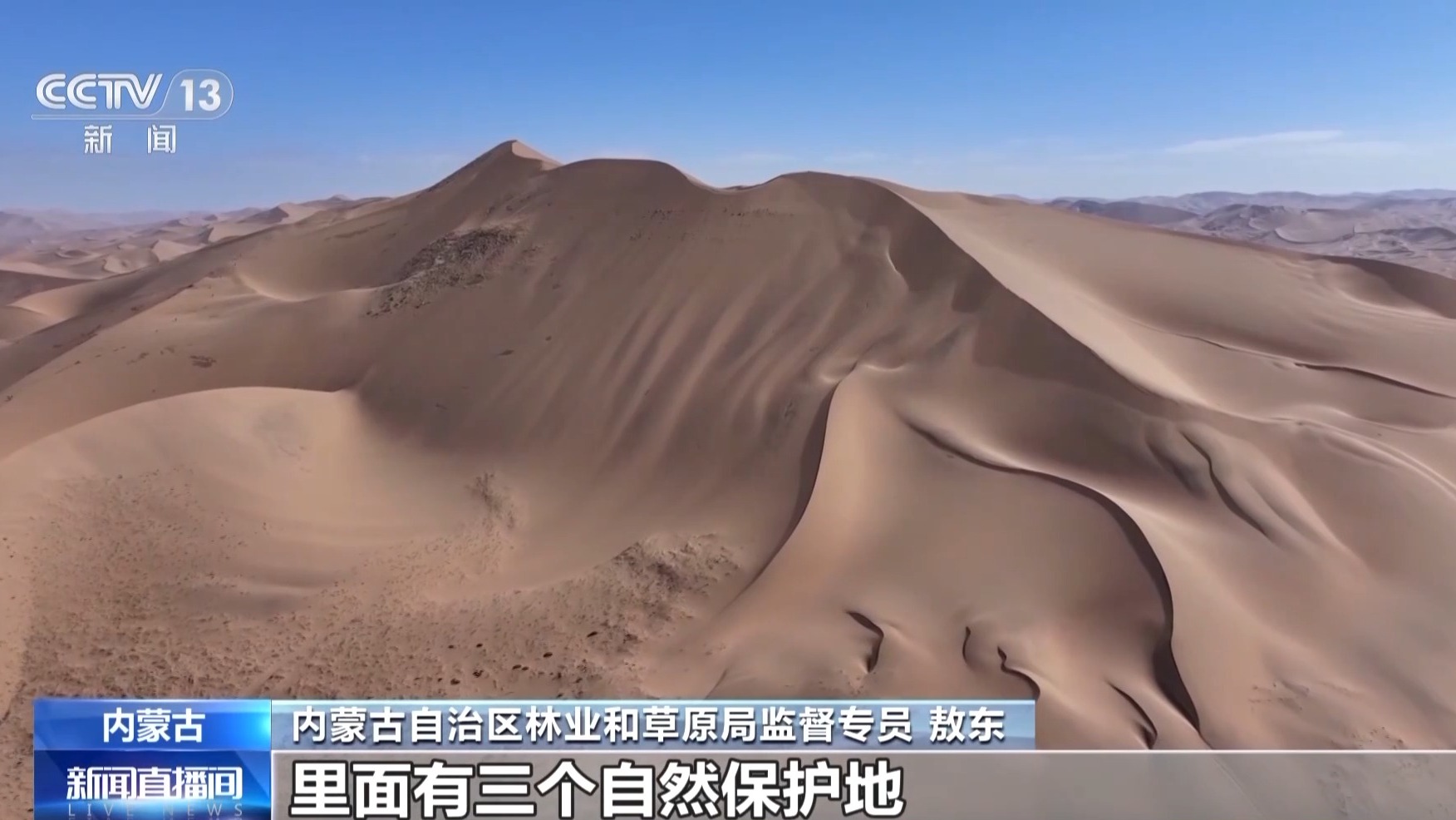 内蒙古自治区林业和草原局监督专员 敖东:列入世界遗产名录的巴丹吉林沙漠—沙山湖泊群自然遗产地里面有三个自然保护地,自治区通过建立自然保护地管理机构,完善规章制度,持续加大保护的投入,强化监督管理,坚持对外合作,不断推进自然保护地体系建设,使众多珍贵的自然遗产得到了切实保护。