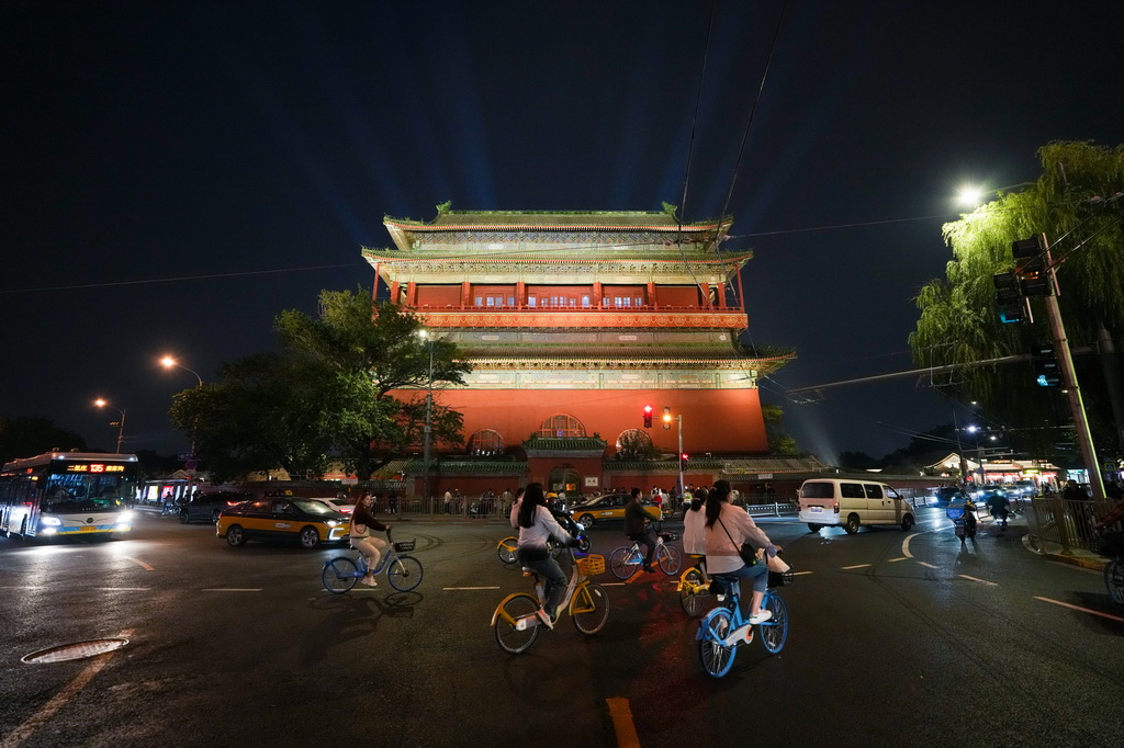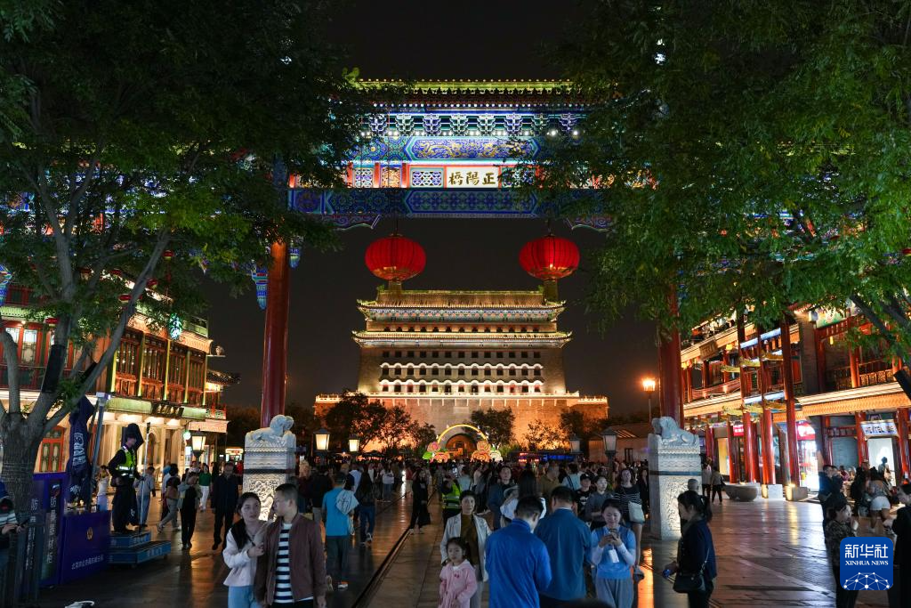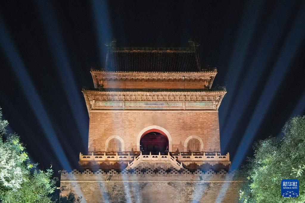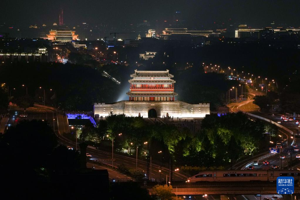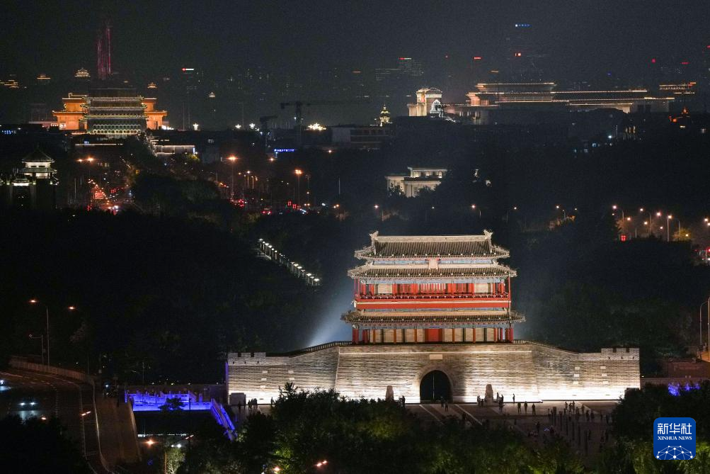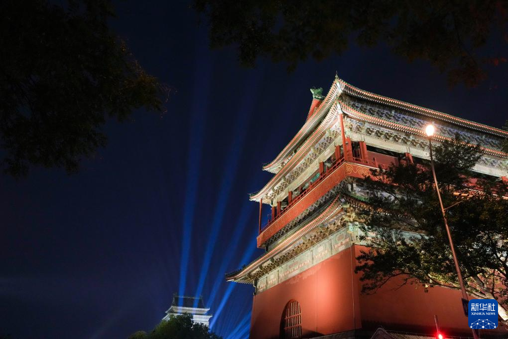 为迎接新中国成立75周年,从9月29日至10月7日,北京将按照重大节假日等级开启2800余处夜景照明设施,呈现“一核、两轴、六区域”的景观照明风貌,永定门城楼、钟鼓楼等实施夜景照明提升,点亮中轴线上的地标建筑,迎接国庆假日。新华社记者 鞠焕宗 摄