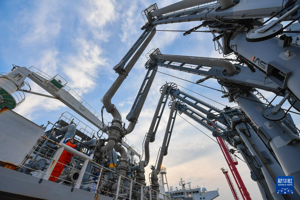 9月26日,来自澳大利亚的“希瑟莎莉”号LNG船在国家管网天津LNG码头顺利靠泊,成为天津LNG二期项目投产后接卸的“首船”。该船满载的6万吨液化天然气,将进一步为国庆节假期京津冀地区提供充足的能源保障。新华社发(杜鹏辉摄)