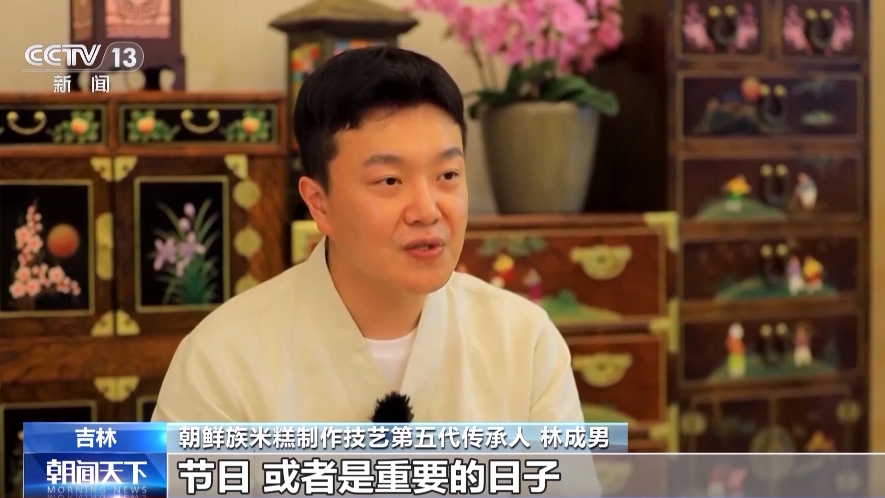 朝鲜族米糕制作技艺第五代传承人 林成男:节日或者是重要的日子,打打糕环节,跟游客们讲解米糕的历史,让游客更多去了解朝鲜族的美食。