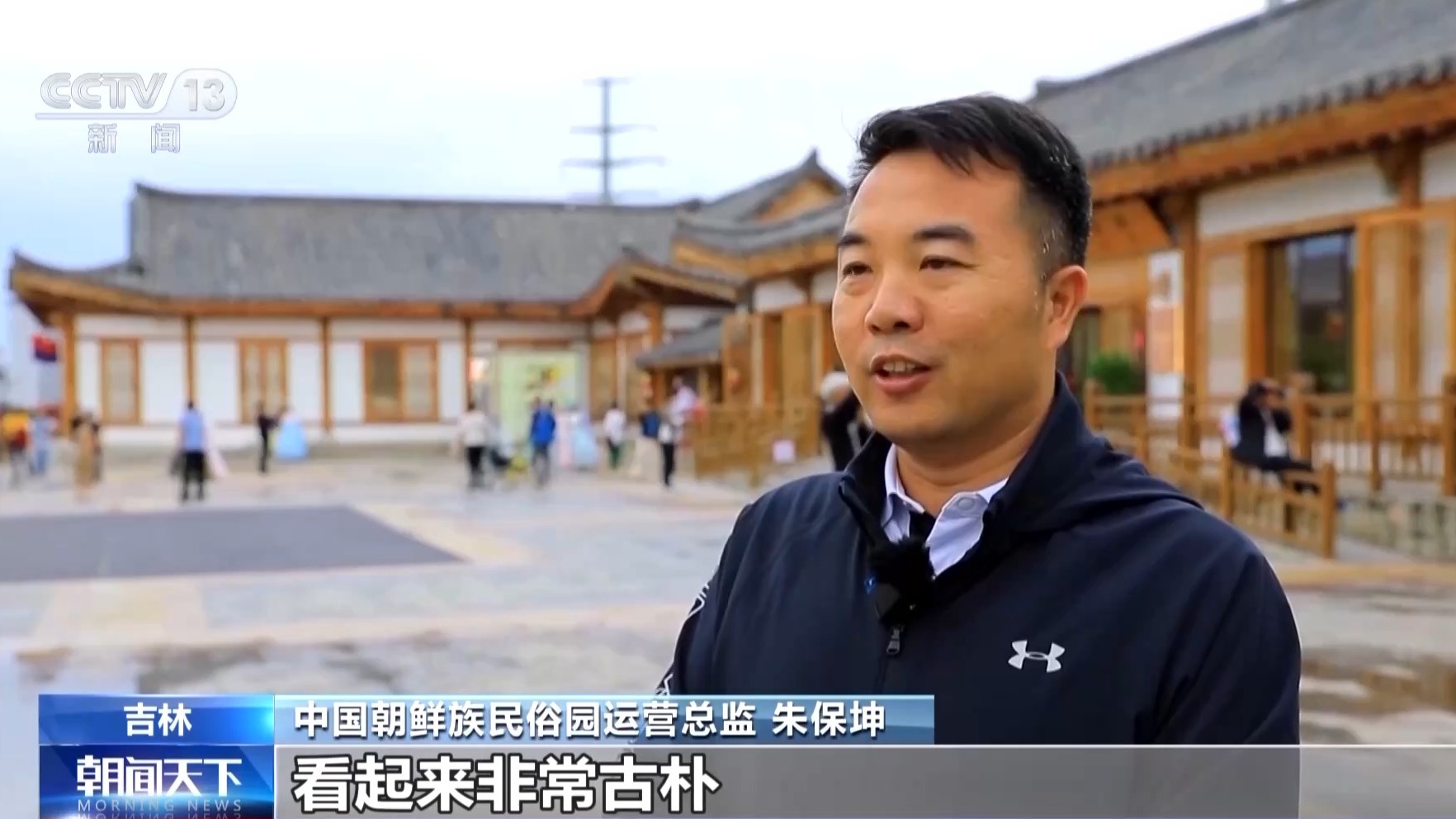 中国朝鲜族民俗园运营总监 朱保坤:咱们园区还有40栋朝鲜族风格的建筑,包括歇山石的屋顶,还有草屋顶,里边有9栋是从龙井市周边移到园区的,已经有130多年的历史了,看起来非常古朴。