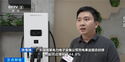 广东深圳某电力电子设备公司充电事业部总经理 孙宝瑞:今年上半年充电桩的销售额达5.6亿元,同比增长44.8%,其中支持超充的设备占比超过一半,同比增长接近100%。