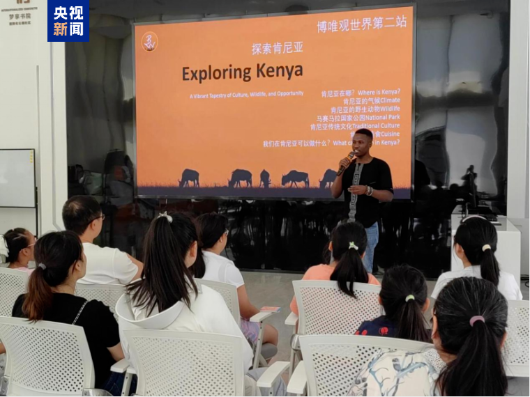 △毕冯·莫曼伊给中国小朋友介绍肯尼亚