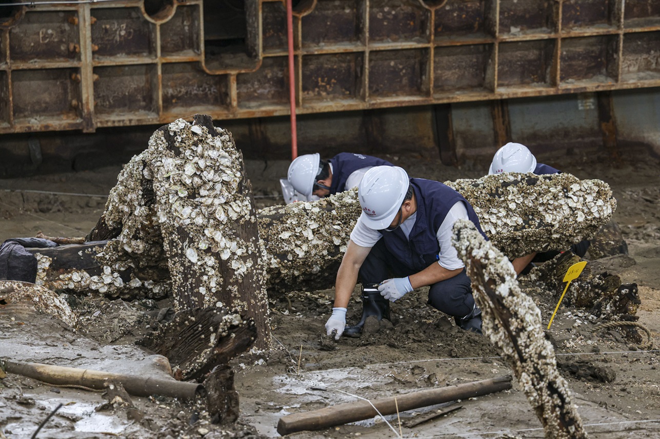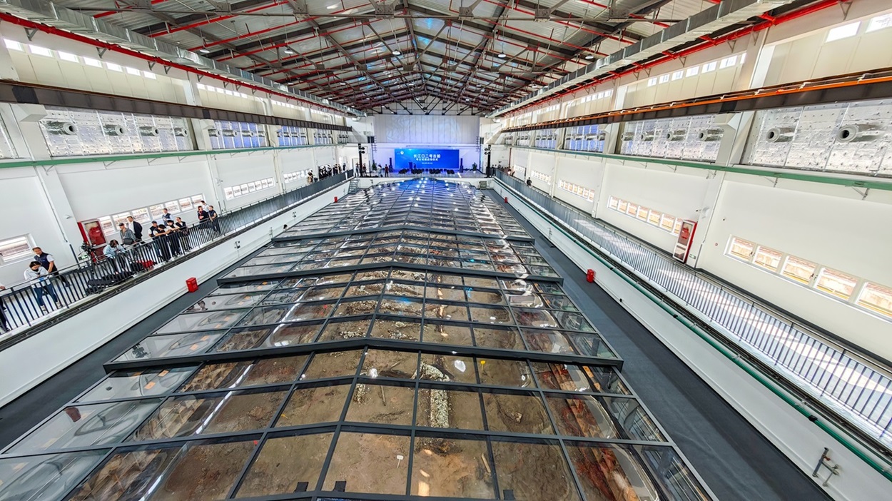 今年8月,在古船保存现场设计建造的总建筑面积3600多平方米的专用考古工作站竣工,配置了覆盖长江口二号古船整体环境的多功能水下文物实验室考古系统,主要包括可开合智能保护舱、综合考古发掘平台、文物保护实验室三大模块,是目前国内最先进、体量最大的智能化考古专用工作站。其中,多功能水下文物实验室考古系统是我国首个通过自主知识产权定制研发的超大型水下文物实验室考古系统,填补了我国超大型水下文物实验室考古领域的空白。