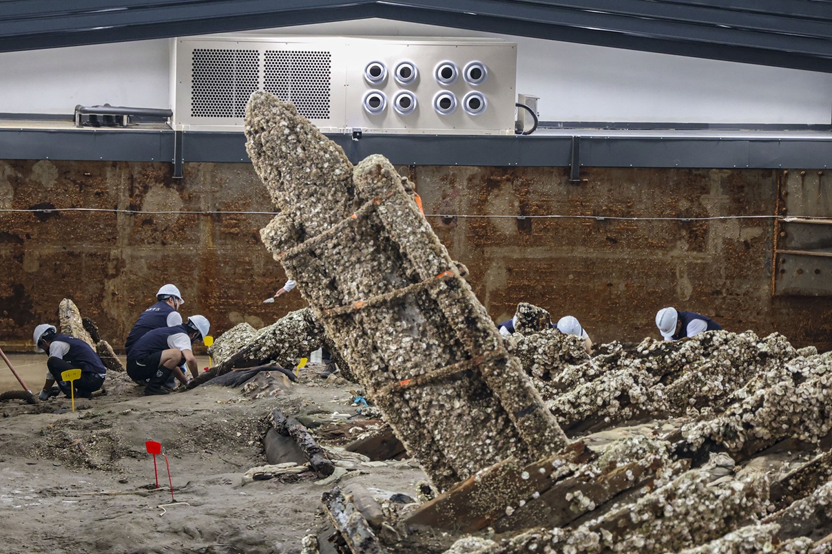 可开合智能保护舱保护古船船体。上海博物馆供图