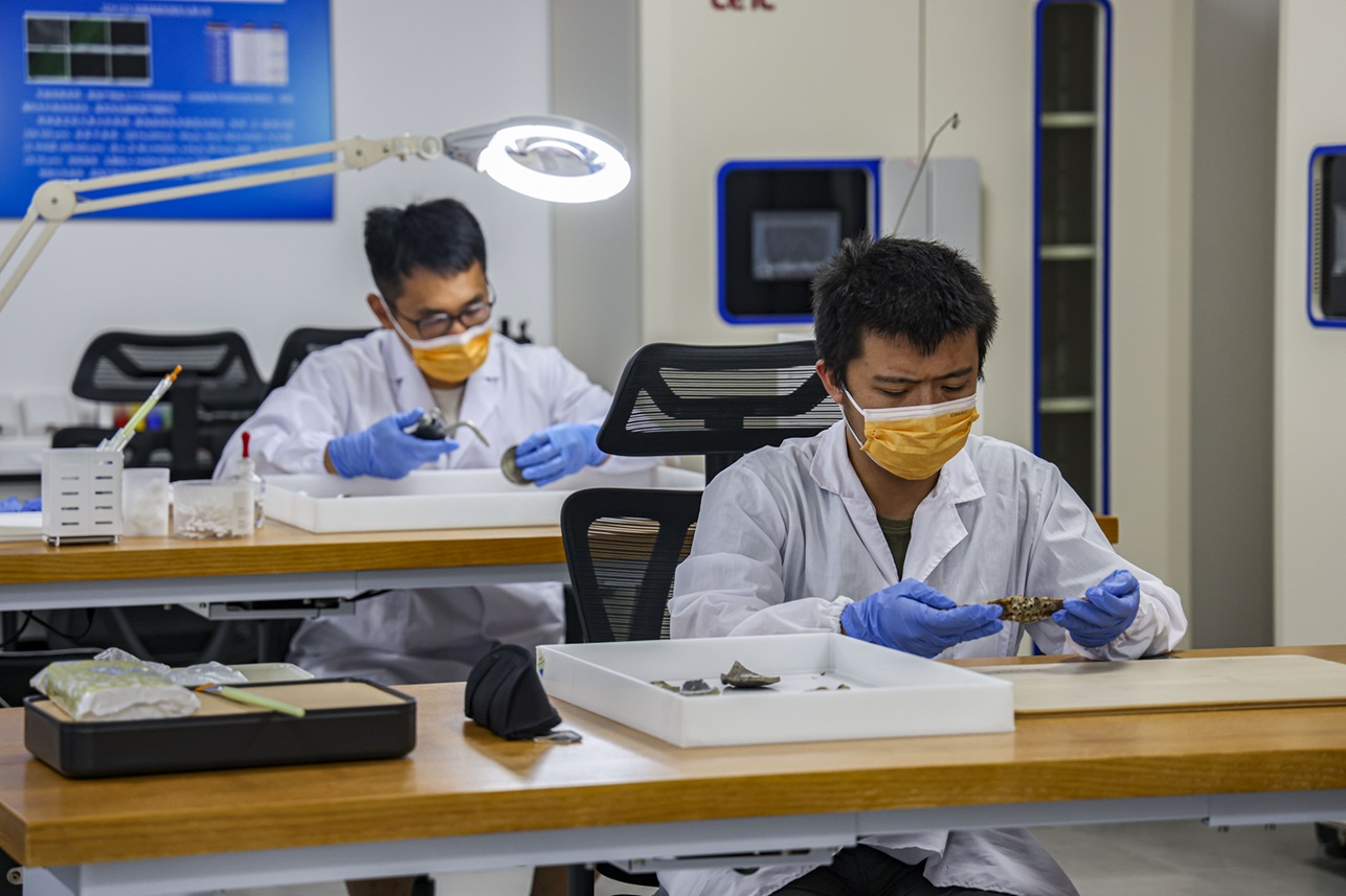 考古现场配备文物保护实验室。王初摄