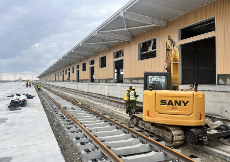 为此,霍尔果斯口岸站宽轨场接轨引出一条长1.049千米的铁轨,并将建设尽头式装卸线、全站台仓库等设施。承建公司副总经理庄国扬介绍,铁路建成后,近期年发货量达80万吨,远期年发货量可达153万吨。