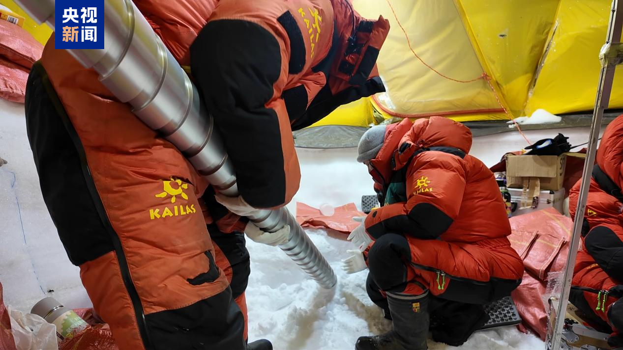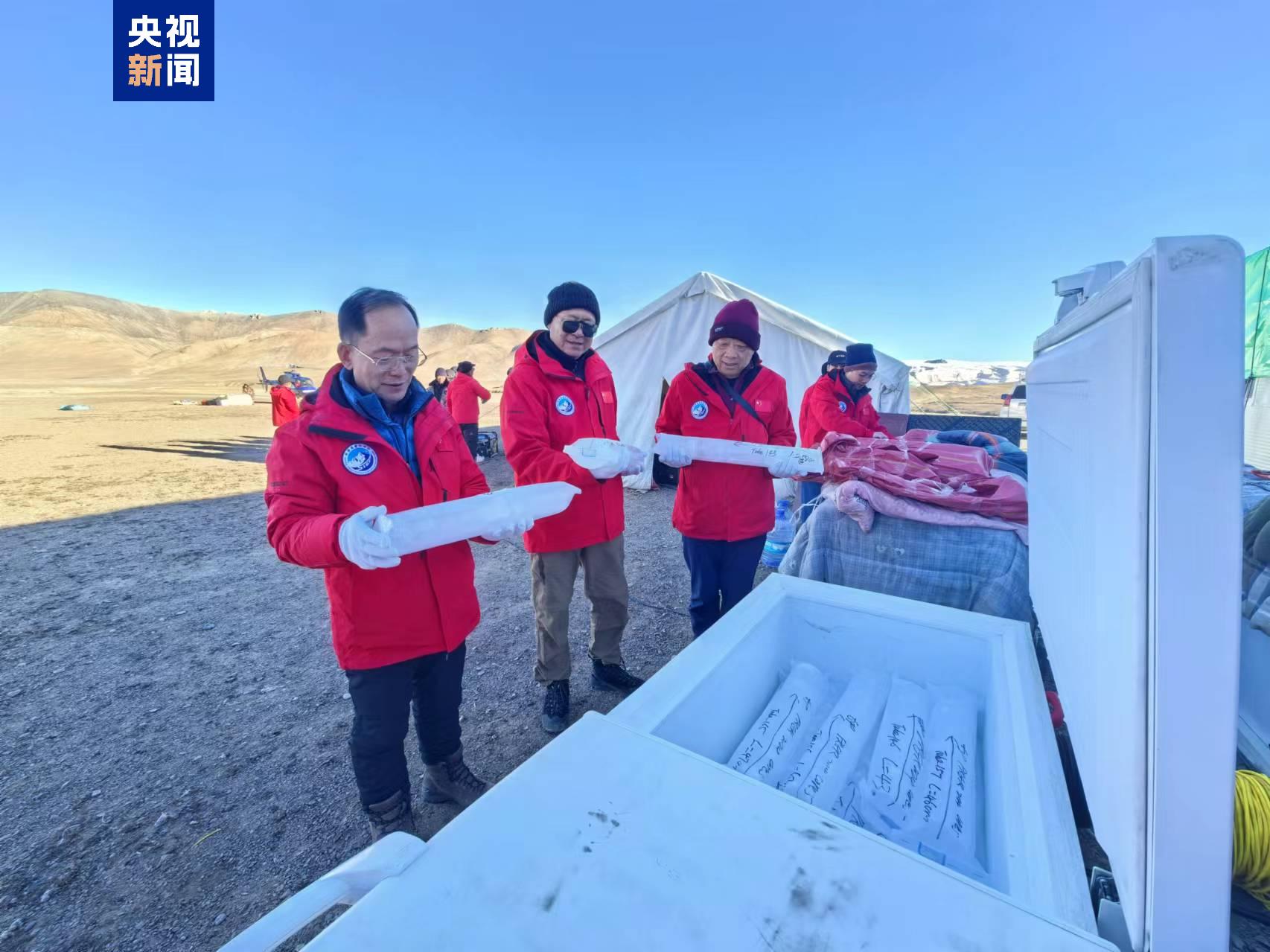 △2024年9月30日,科考队员在普若岗日冰原钻取冰芯。