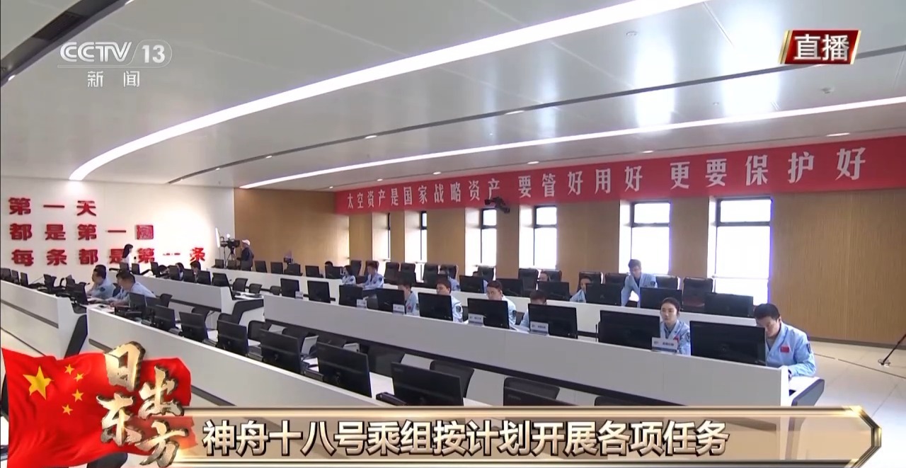 总台央视记者 刘洁:航天员们今天最重要的一项工作是天地连线。今天上午10:00,神舟十八号航天员将与总台演播室进行“天地连线”,总台主持人会对三名航天员进行直播采访。我们从北京航天飞行控制中心了解到,三名航天员刚刚进行了视频通话的检查测试,图像、话音状态一切正常。其实,三名航天员是从今天早晨8:00就已经开始了各项准备工作,这次的天地连线将在天和核心舱里进行,航天员对核心舱也进行了精心布置。此时此刻,在北京航天飞行控制中心的现场,我们看到各个工位上的技术人员也在做着各项准备工作,他们要为今天的天地连线提供技术支持。