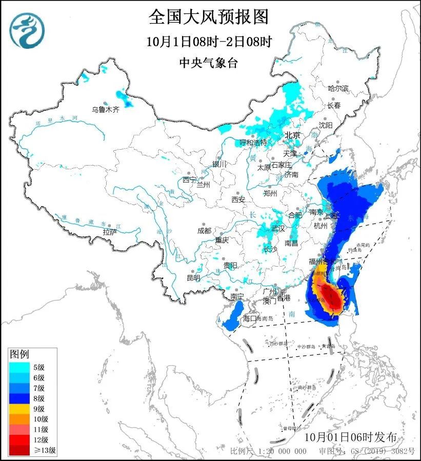 受冷空气影响,10月1日8时至2日8时,内蒙古中东部、山西北部、湖北北部和东部、湖南中北部、福建东部沿海、浙江东部沿海、台湾岛沿海等地有5级至6级、阵风7级至8级的大风,江河湖面及山口地区阵风风力可达9级至10级;黄海南部海域、东海北部和西部海域将有7级至8级、阵风9级至10级的大风。中央气象台10月1日6时继续发布大风黄色预警。