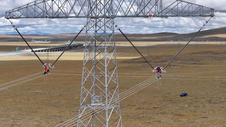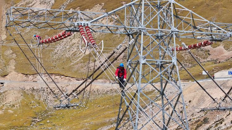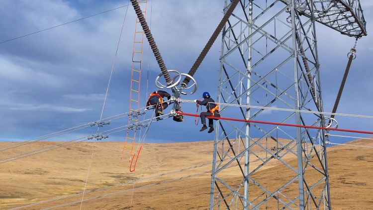 9月的林周,高原的阳光刺得睁不开眼。在走线现场,小组负责人扎西顿珠指挥两名工作人员上塔进行悬挂接地线,随后,两名走线人员顶着强烈的紫外线对2329号至2325号铁塔开展线路走线工作,在走线过程中,他们认真检查导线有无磨损、断股、严重锈蚀、外层损伤、零部件缺失等缺陷。现场走线组负责人扎西顿珠向记者介绍“在高海拔、大温差、强风沙的气候环境下,设备长期暴露在外,受到风吹日晒雨淋,为精准掌握设备状况,每年年检都要开展走线消缺工作。”