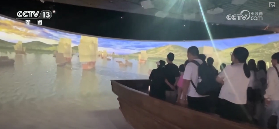 在隋唐大运河文化博物馆,游客可以站立“船头”,通过现代科技的光与影与“千年运河”邂逅。也可以触摸互动屏,在“唐代物产地图”上查询各地的产粮种类及分布情况。