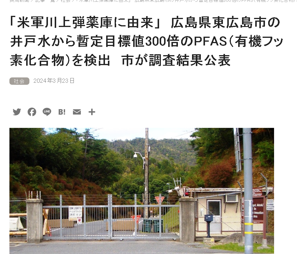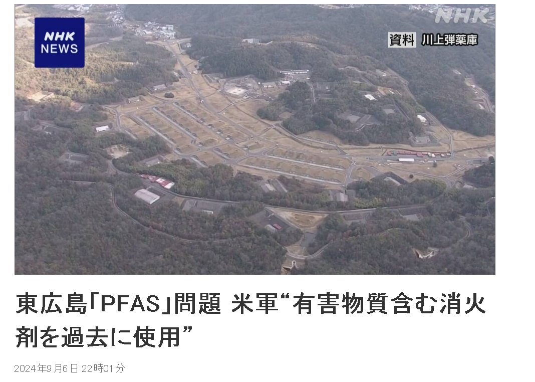 虽然PFAS的污染问题是一个全球各国都在面对的问题,但日本东广岛市的情况却很特殊。因为,在经过数月的调查后,东广岛市政府发现造成当地水体被PFAS物质污染的源头,竟源自于该市西部的驻日美军的一个弹药库:川上弹药库。