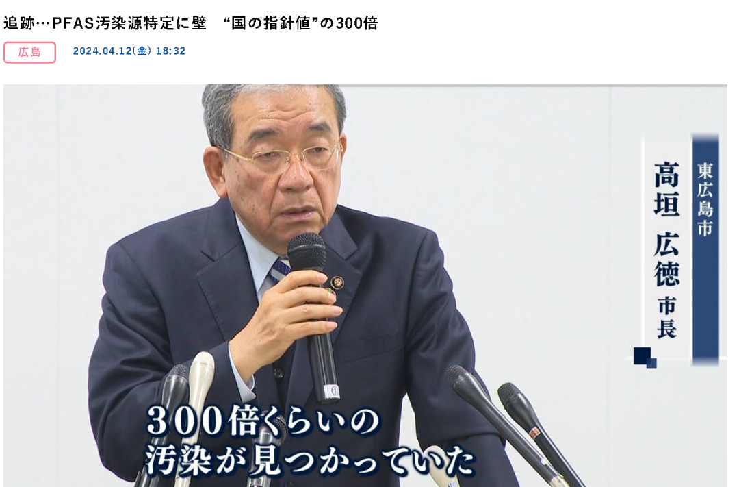 从日本媒体的报道来看,这件事源于去年当地的一次水质检测。去年12月,东广岛市在当地的河流以及地下水中,发现水中的“全氟烷基和多氟烷基物质”(以下简称为PFAS)出现了明显的超标。