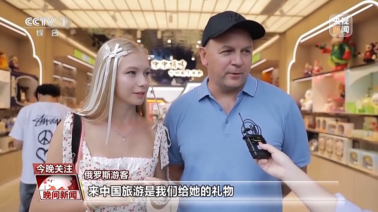 俄罗斯游客:来中国旅游是我们给她的礼物。这对我们来说非常迷人,非常令人兴奋,她很喜欢。