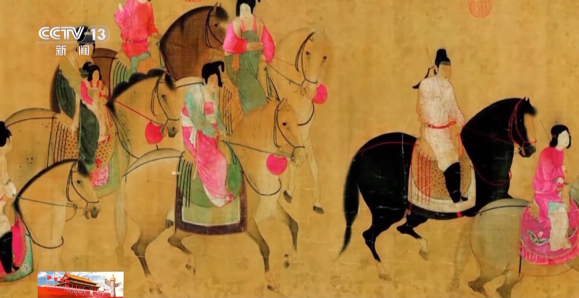 2019年,辽博办了一场创新的展览:“又见大唐”,用100件珍贵文物再现盛世大唐的神致气韵,果断地放弃了按朝代展珍品的常用方式,各个朝代只要反映大唐主题的文物都可以用。上图这幅《虢国夫人游春图》虽然是宋朝摹本,但画的是大唐盛世的辉煌繁华。