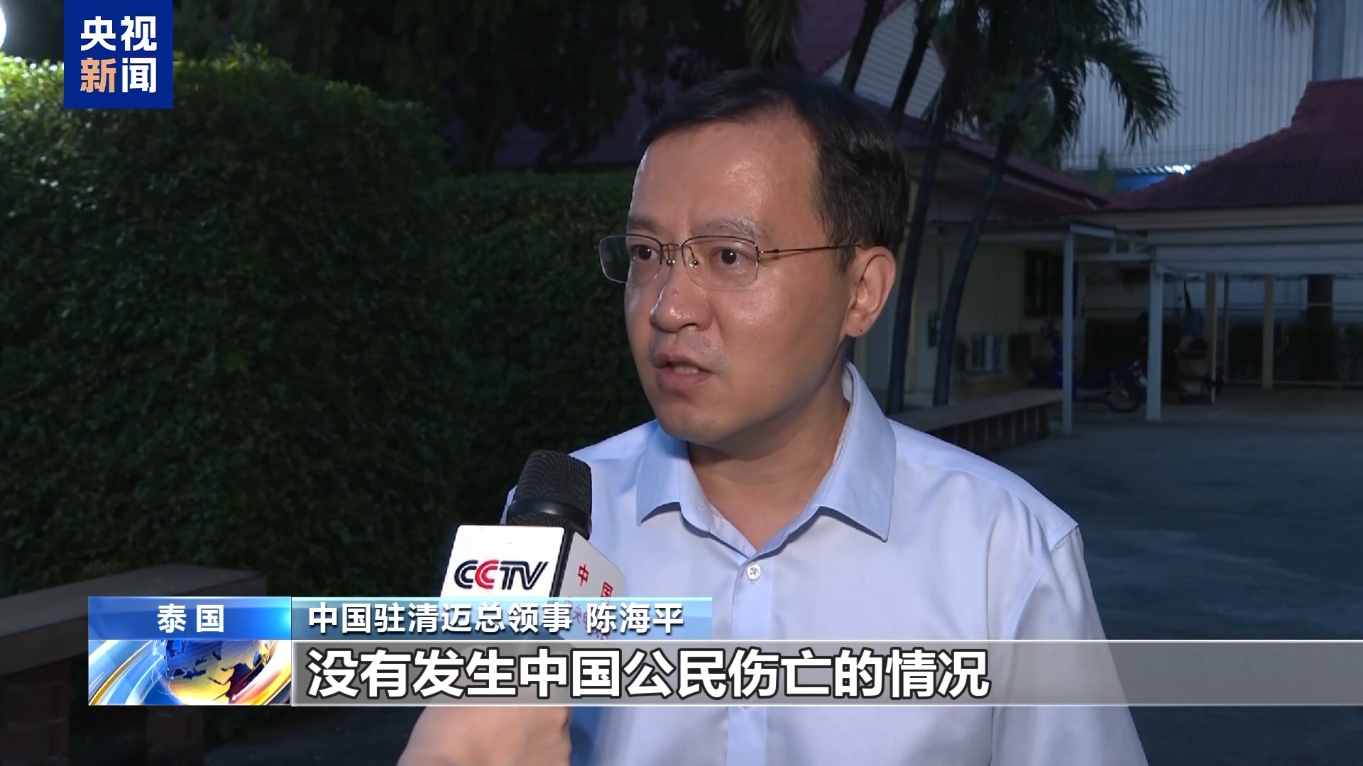 中国驻清迈总领事 陈海平:经过大家协同努力,在这次洪灾中没有发生中国公民伤亡的情况,短暂被困人员也及时脱困,在清迈的中资企业也没有受到大的影响。我馆将持续跟踪灾情,继续开展好有关领保协助工作。