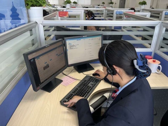 10月11日,北京12345市民热线服务中心,工作人员在热线值班台接听电话。中青报·中青网记者 张艺/摄