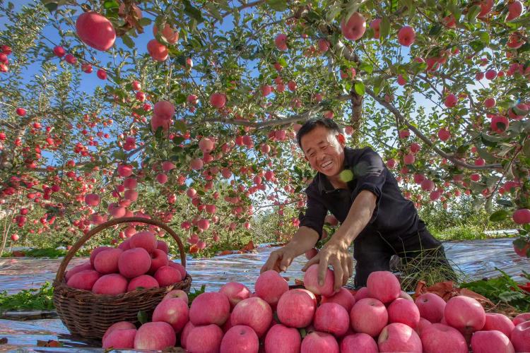 山西省临汾市乡宁县昌宁镇刘家原村,果农们在进行采摘、分拣、装箱等工作。来源:人民图片
