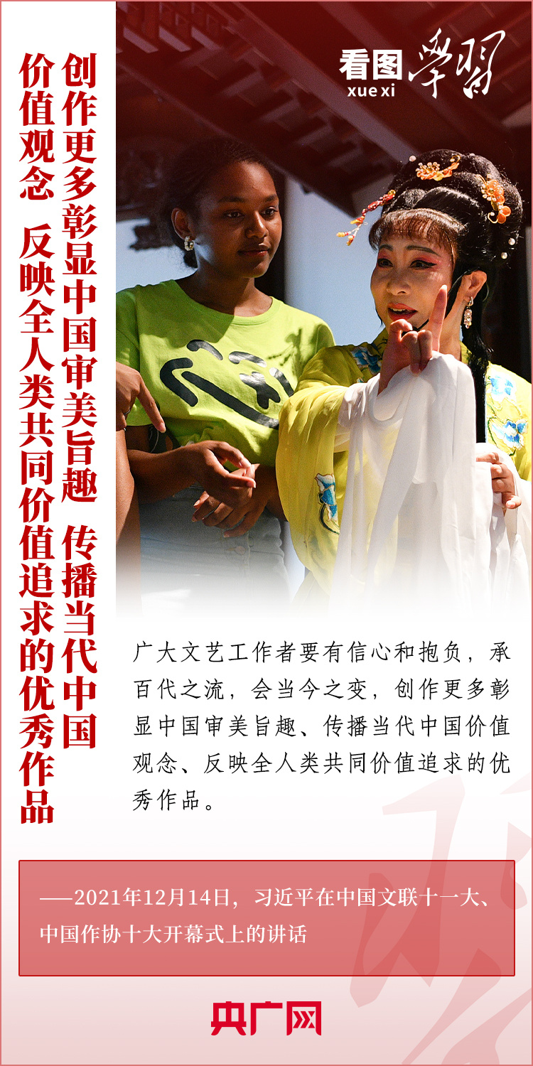 十年来,我国广大文艺工作者深入生活、扎根人民,创作出一大批彰显中国精神、体现人文关怀、富有艺术创新力的优质文艺作品,努力用丰富多彩的文艺精品满足人们对精神文化生活的需求。如何创作出更多无愧于时代、无愧于人民的优秀作品?让我们一起深刻领悟总书记的“文艺观”。