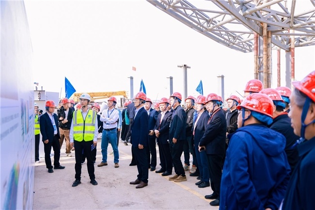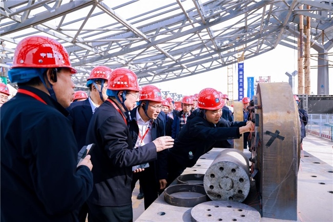 在观摩现场,中心区主楼项目北三区重量达2800吨的钢屋盖顺利提升,标志着项目钢结构主体完成三分之二的施工进度。