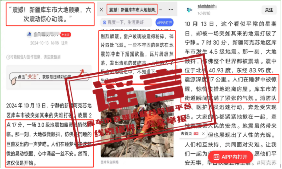 但有部分自媒体账号为博取流量吸引眼球,罔顾事实和真相,编造地震谣言,拼接与此次地震不符的地震废墟或灾后救援凄惨图片,混淆视听误导网民。