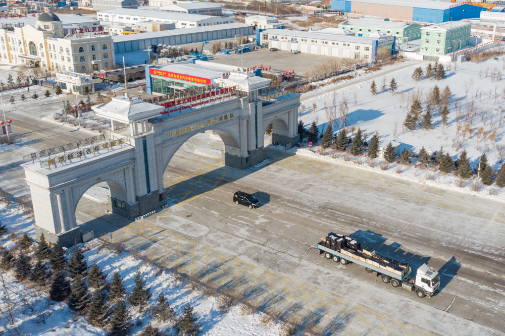 这是中国(黑龙江)自由贸易试验区黑河片区(2024年1月31日摄,无人机照片)。2023年,该自贸片区外贸进出口总值达244.82亿元,实现增幅56.9%,引进外资企业16家,直接利用外资127.3万美元,同比增长27.3%。