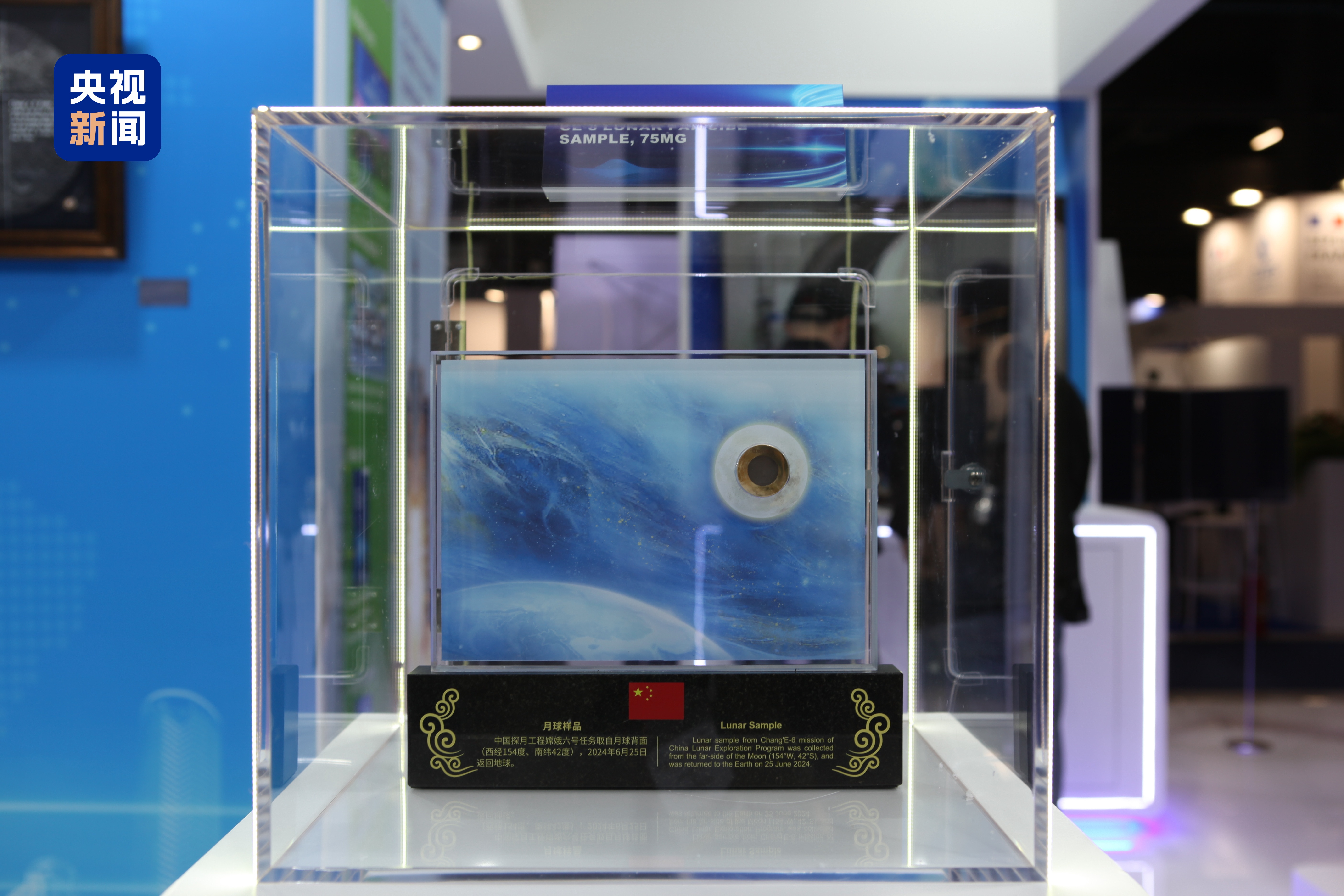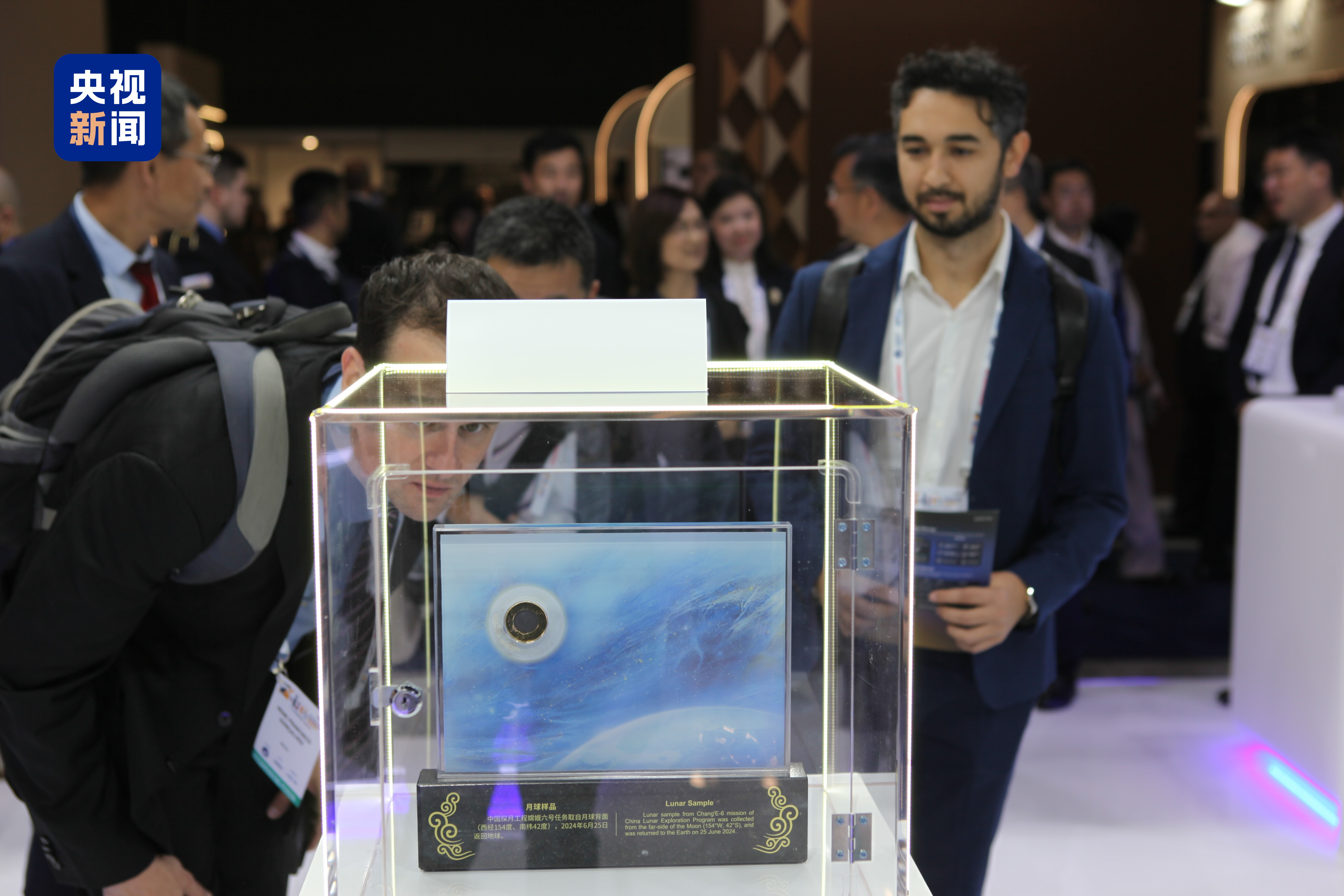 中国探月工程嫦娥六号任务取得的重大成果成为全场瞩目的焦点。嫦娥六号从月球背面采样返回的月壤样品首次向全球展出。这一珍贵样品的亮相不仅展示了中国在航天领域的科技进步,也为全球航天科学家提供了新的的研究前景。众多国家航天机构和国际组织负责人以及与会代表参观了月球样品。