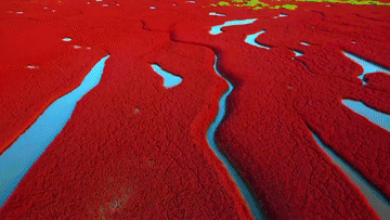 每到秋季,在辽宁省盘锦市,有一片被红色覆盖的海岸线,沙与土、盐与碱,在这里有机结合。