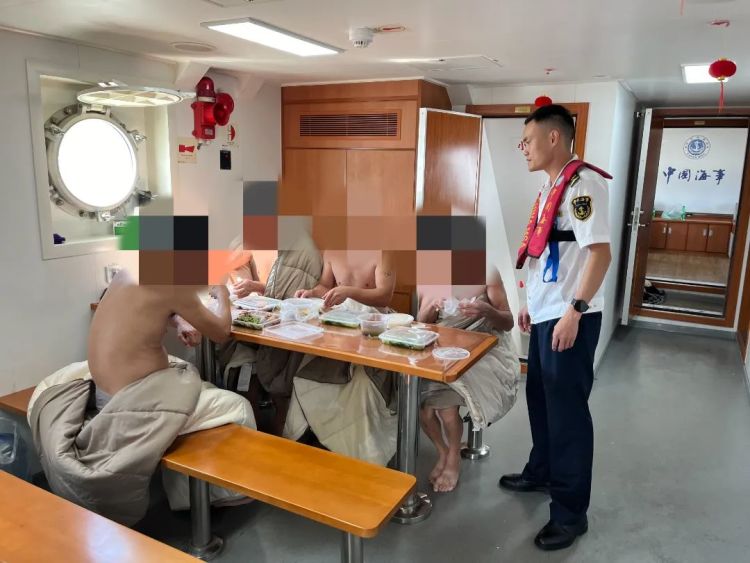 至此,5名船员全部成功获救,搜救人员也及时为获救船员提供热水、食品、棉被和休息场所,帮助获救船员恢复体温、补充体力。
