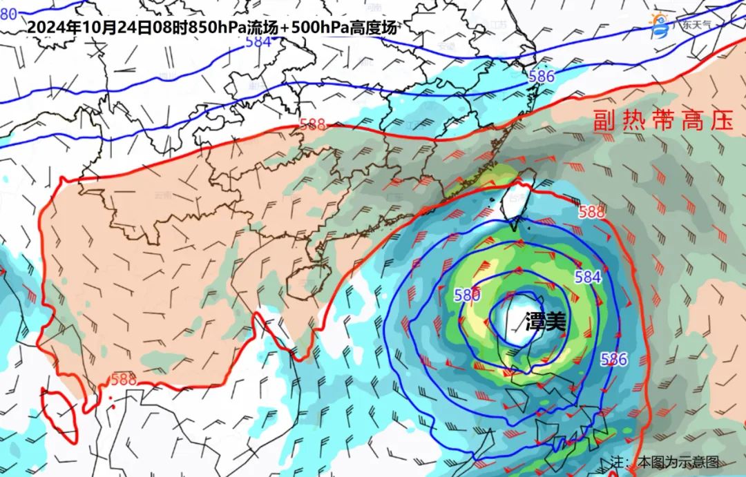 25日-27日“潭美”将在副高南侧气流引导下向偏西方向移动,横过南海中北部海面,趋向海南及其南部海面。但由于副高的调整和冷空气的影响都有可能会影响台风的移动方向,且预报时效较长,台风的强度和路径发展仍有变数。