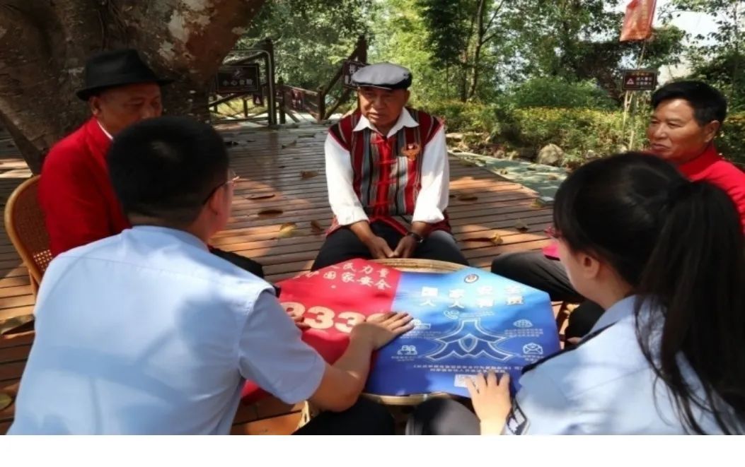—— 打通普法宣传“最后一公里” 。 国家安全机关深入边境村寨用边疆少数民族熟悉的语言开展涉边反间谍普法宣传,用少数民族群众能听懂的话代替概括性的法律条文表述,用接地气的“身边事”教育警醒“身边人”。将法理融入到传统情理之中,用法治“力度”提升民生“温度”,让法治的曙光守护好边境的安宁。