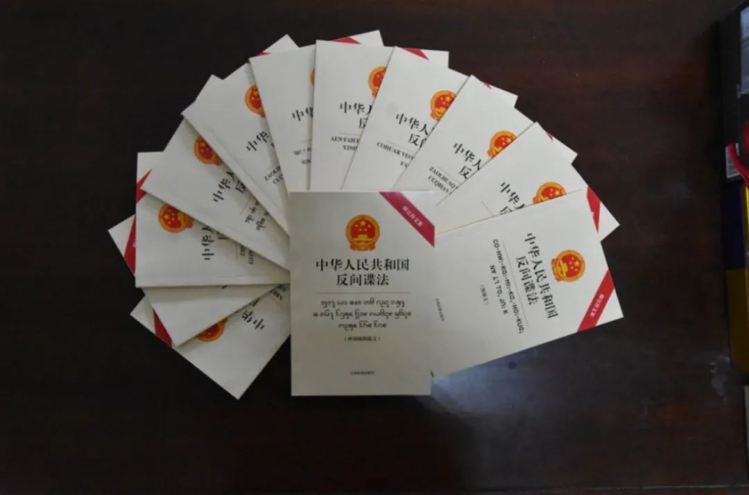 ——精心准备特色普法文本 。 将《中华人民共和国反间谍法》翻译成了12种少数民族语言文本,包括傣文、景颇文、傈僳文、哈尼文、拉祜文、彝文、苗文、佤文、壮文、藏文、纳西文。亲切的语言,熟悉的文字,西南边陲,反间防谍普法“一个也不能少”。