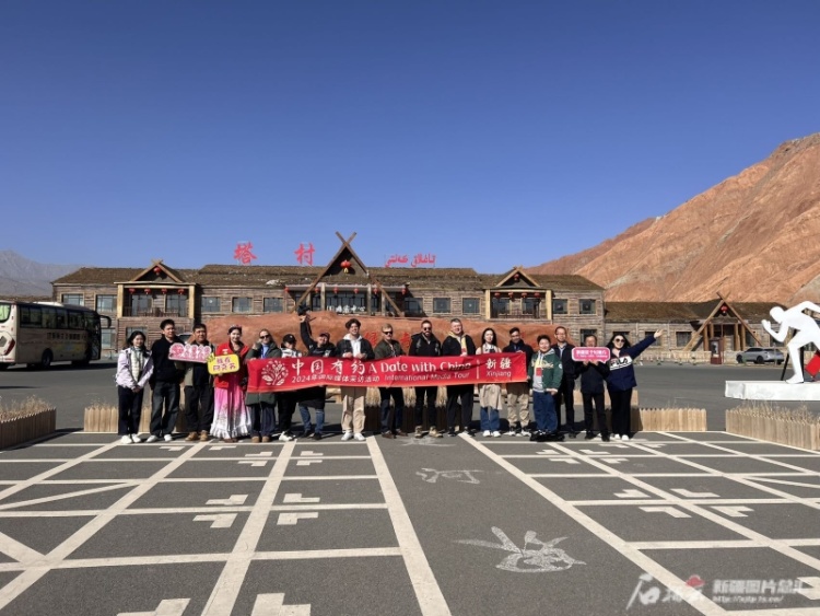 “中国有约·相约新疆”2024国际媒体采访活动来到天山托木尔景区·塔村。石榴云/新疆日报 记者张小宓摄