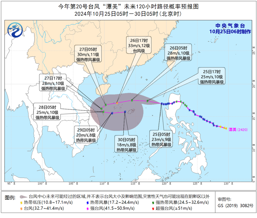 中央气象台10月25日06时继续发布台风蓝色预警: