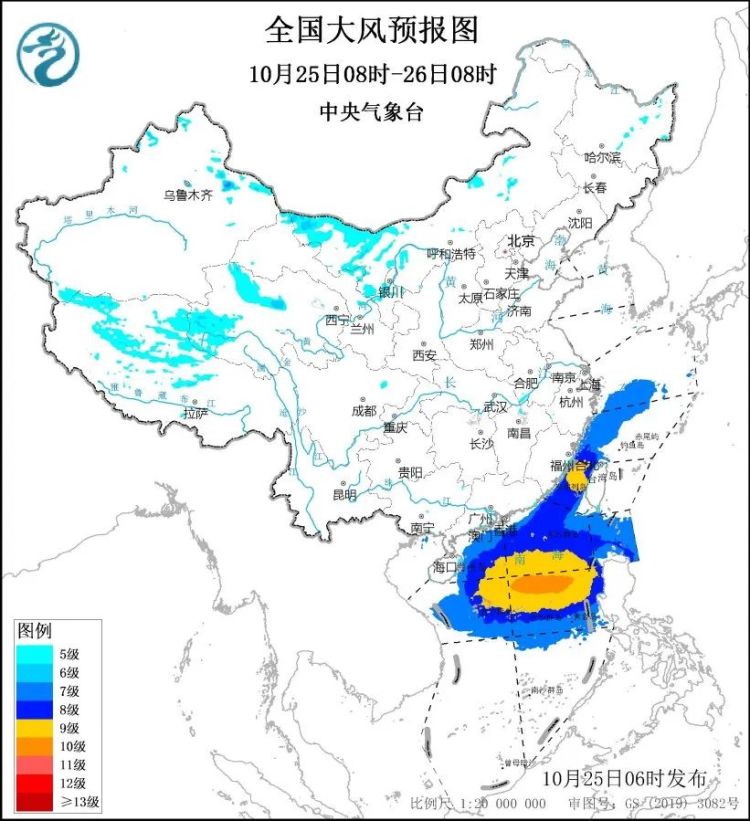 预计,10月25日08时至26日08时,东海西部海域、台湾海峡、南海北部和中部海域、巴士海峡、东沙群岛、中沙群岛、西沙群岛将有7至9级、阵风10至11级的大风,其中南海中东部的部分海域风力可达10级、阵风11至12级。