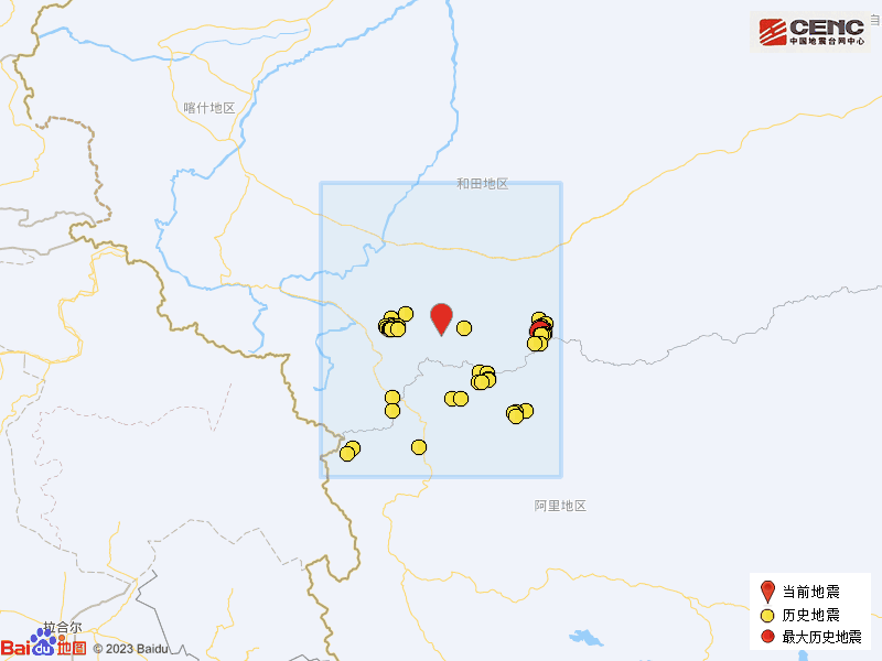 历史地震: 根据中国地震台网速报目录,震中周边200公里内近5年来发生3级以上地震共86次,最大地震是2020年6月26日在新疆和田地区于田县发生的6.4级地震(距离本次震中149公里),按震级大小前50次历史地震分布如图。