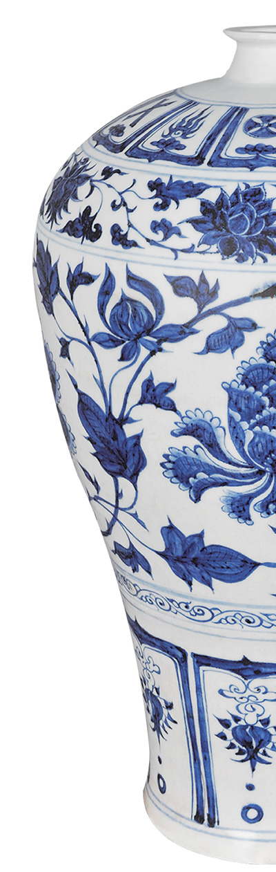 不妨想象:工匠先在坯胎上用青花料绘画,再施以透明釉,最后在高温下一次烧成。奇妙的蓝色纹样随即浮现,色泽鲜丽,有金属光泽。
