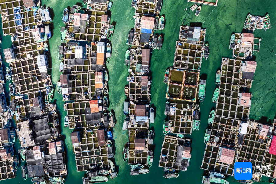 陵水疍家渔排以“依水而居,舟楫为家,靠岸成村,以渔为生”的独特风情,吸引了来自意大利的摄影师法比奥诺达里到此。波光粼粼的海面上,木板搭起纵横交错的网格,格子上的铁皮木屋一户连着一户,船只穿梭其间,透过无人机的视角俯瞰400多户渔排星罗棋布,形成一道壮观又独特的风景。