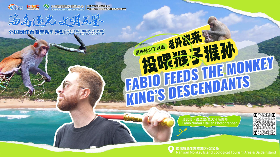 南海网10月28日消息(记者 潘頔)今年暑期,国产首个3A游戏大作《黑神话:悟空》火爆全网,给了游戏玩家们一个大惊喜。近日,在海南陵水南湾猴岛生态旅游区,来自意大利的摄影师法比奥·诺达里(Fabio Nodari)手持金箍棒,化身“悟空”在这见到了“大师兄”的伙伴们,在猴岛体验游戏以外的热带风情和浪漫。