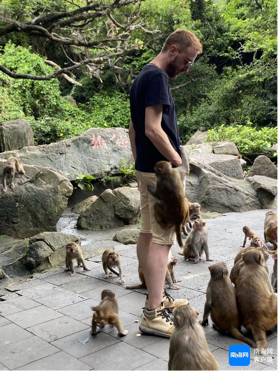 走进猴岛景区,所见之处各种植物搭配错落有致、独具匠心,法比奥·诺达里仿佛置身于绿的世界、花的海洋;顽皮、可爱的猴儿们在绿荫下、树枝间扑腾纵跃、追逐打斗,旁若无人地嬉戏,法比奥·诺达里在景区工作人员的指导下与它们开心地玩耍,尽情融入人猴同乐的氛围中去。