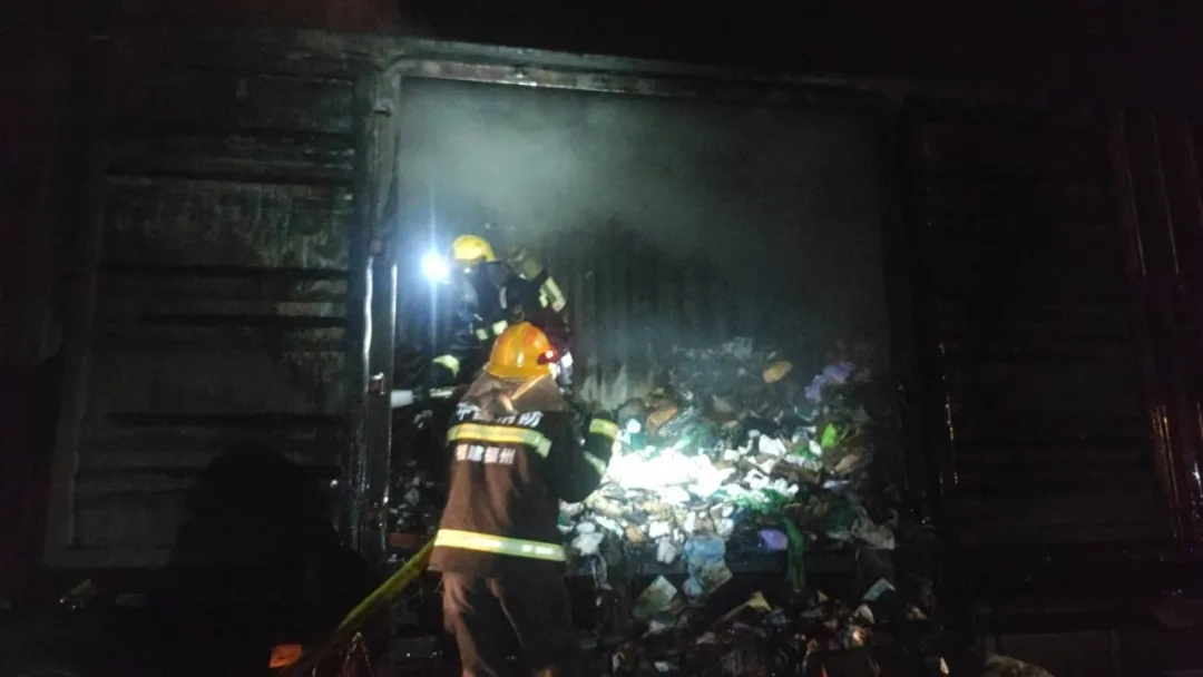 并从车厢后门和侧门设置水枪进行扑救