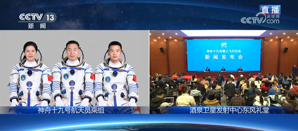 受任务总指挥部委托,下面,由我向大家介绍神舟十九号载人飞行任务有关情况。经任务总指挥部研究决定,瞄准北京时间10月30日04时27分发射神舟十九号载人飞船,飞行乘组由航天员蔡旭哲、宋令东、王浩泽组成,蔡旭哲担任指令长。航天员蔡旭哲执行过神舟十四号载人飞行任务;宋令东和王浩泽均为我国第三批航天员,两人都是“90后”,都是首次执行飞行任务。其中,宋令东入选前是空军飞行员;王浩泽入选前是航天科技集团有限公司航天推进技术研究院的高级工程师,是我国目前唯一的女航天飞行工程师,也将是我国第三位执行载人航天飞行任务的女性。目前,任务各项准备工作正在稳步推进,执行此次发射任务的长征二号F遥十九火箭即将加注推进剂。