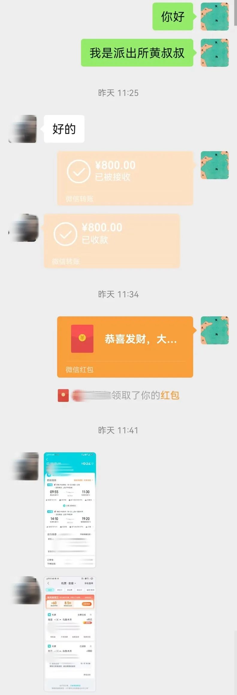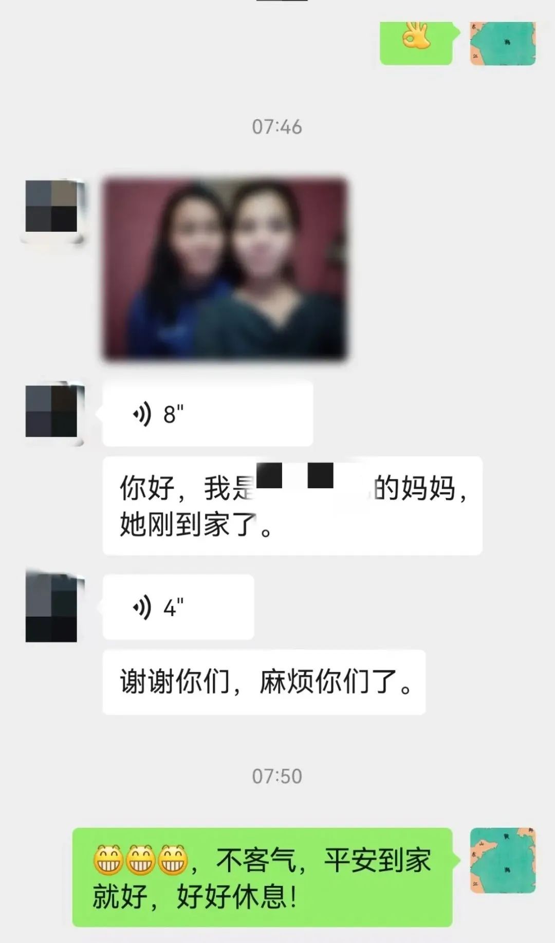 感谢民警一路上的悉心照顾