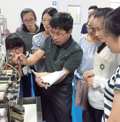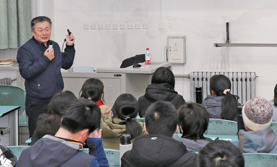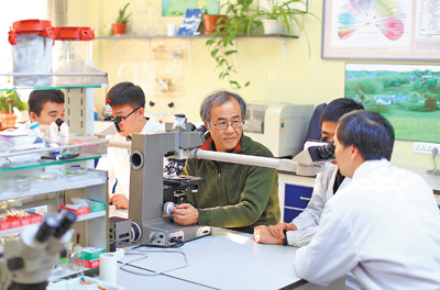 中国科学院院士宋微波(中)在指导学生开展科研。